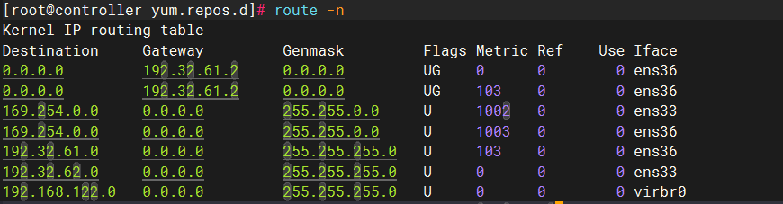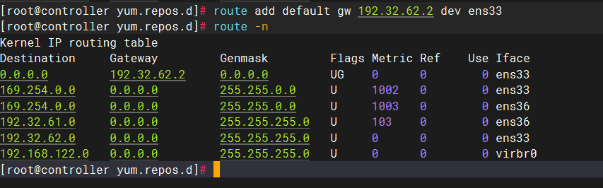 因为安装openstack-iaas以及基础脚本后,默认以仅主机为路由,而centos7的源关了,无法使用本地源,所以要使用在线源,我们更改默认路由让其能ping外网