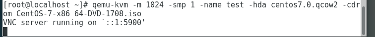 qemu-kvm -m 1024 -smp 1 -name test -hda 磁盘名称 -cdrom iso光盘名称