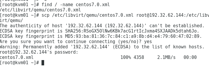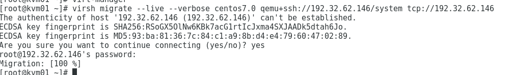 virsh migrate --live --verbose centos7.0 qemu+ssh://目的宿主机ip/system tcp://目的宿主机ip