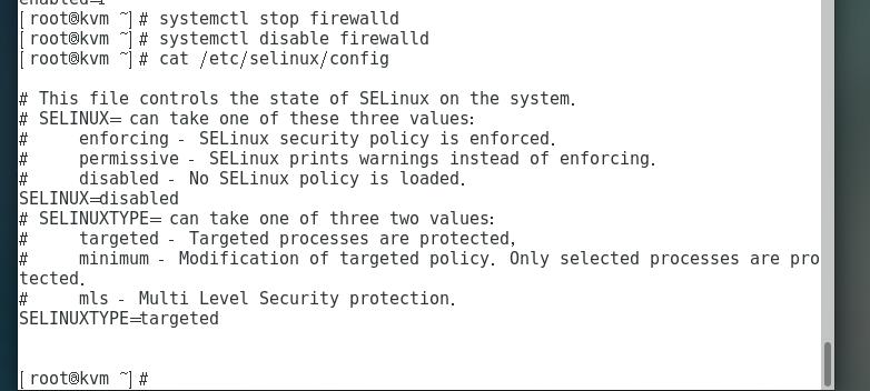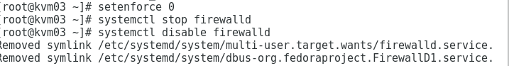 关闭防火墙,selinux,三台虚拟机都需要,这里演示共享服务器kvm03
