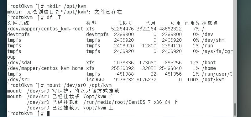 建立挂载目录kvm,挂载本地yum源,配置本地yum源,清缓存,建立缓存
