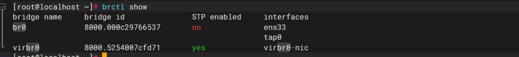 if brctl show | grep "^$BRIDGE" &> /dev/null; then
