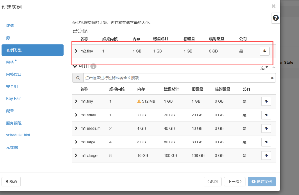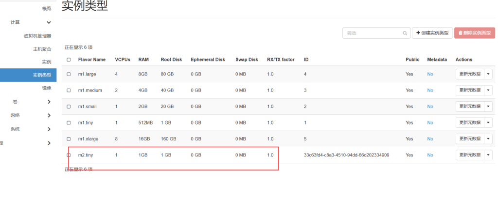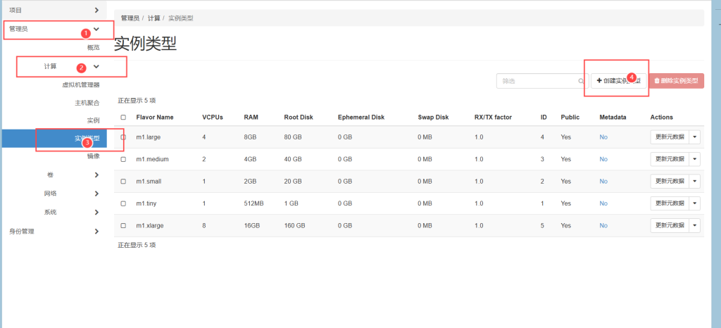 点击管理员——计算——实例类型——创建实例类型