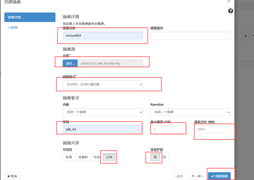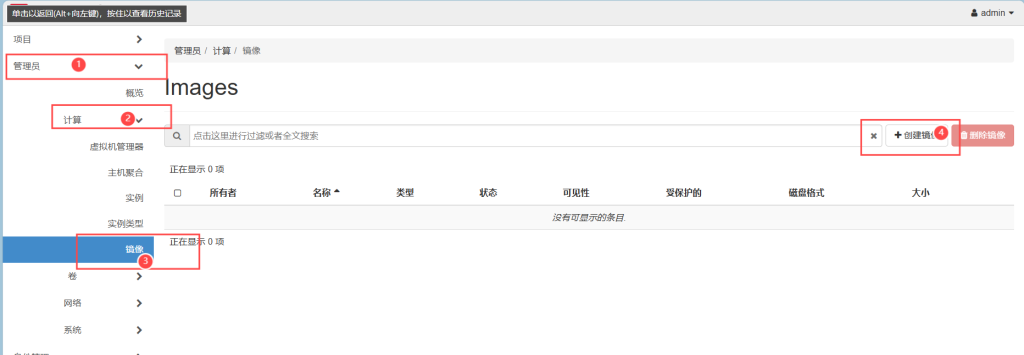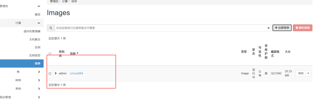 点击管理员——计算——镜像——创建镜像