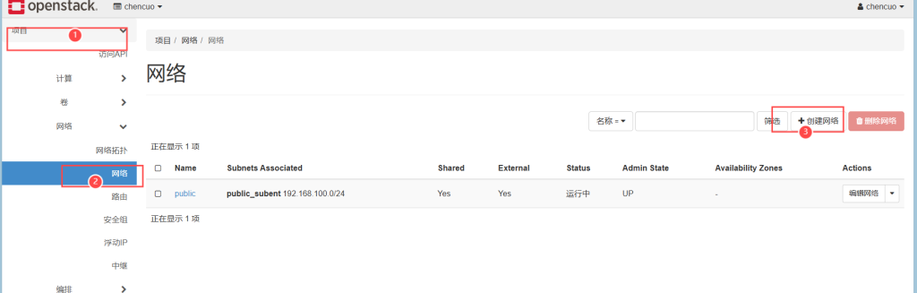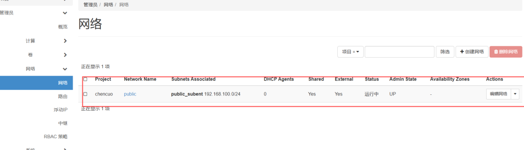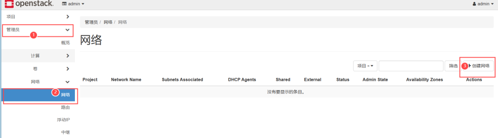 点击管理员——网络——创建网络