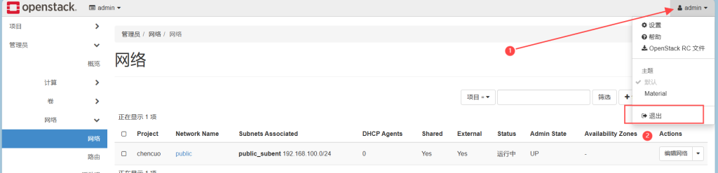 点击右上角的admin——退出