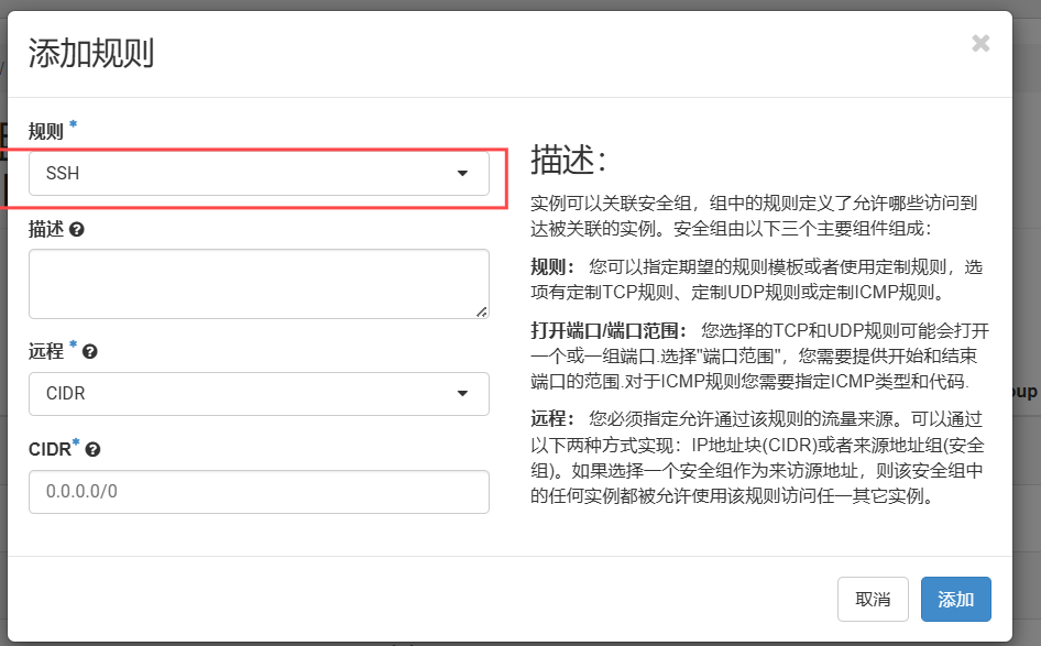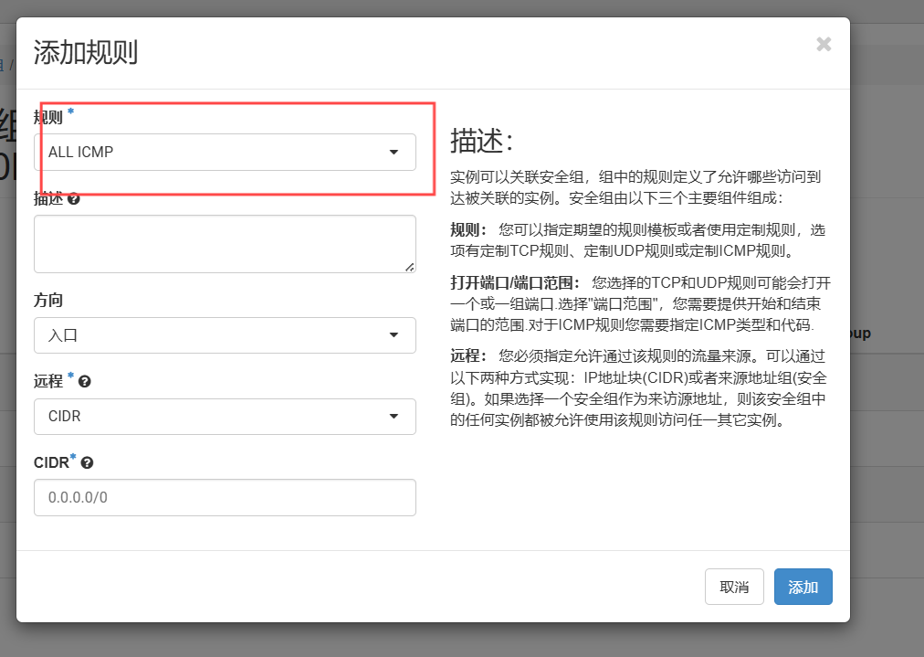 添加ALL LCMP,SSH规则,实现能够联网,远程连接
