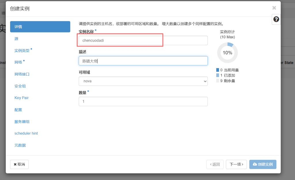 项目——计算——实例——创建实例