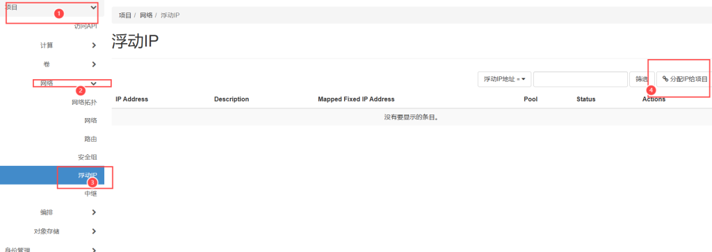 项目——网络——浮动ip——分配ip给项目