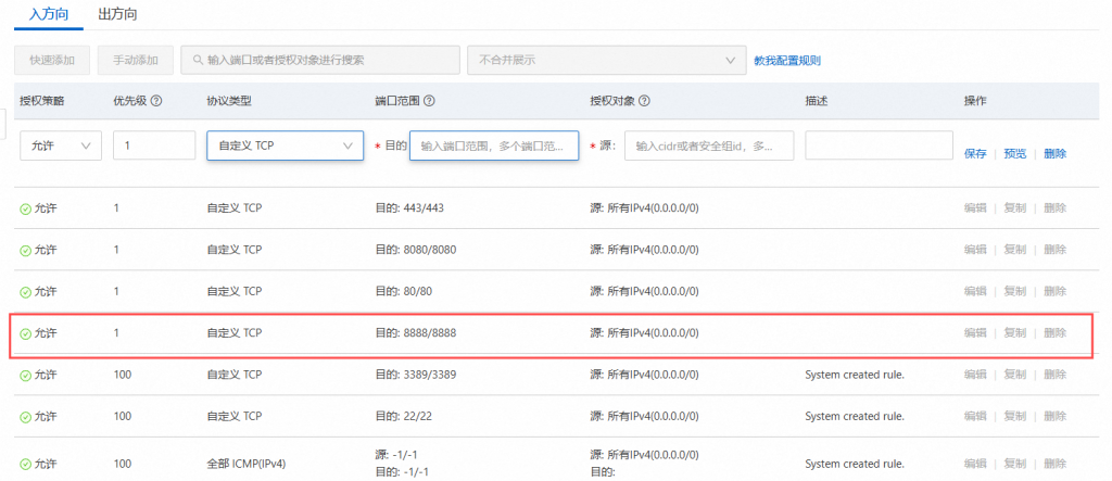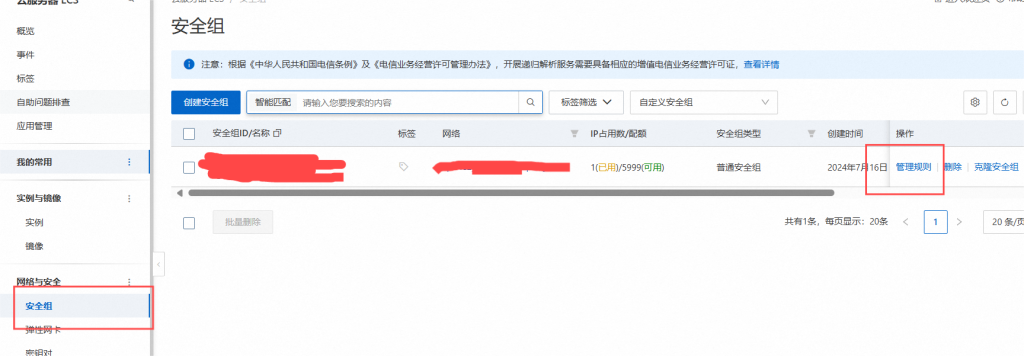 回到阿里云后台,选择安全组,管理规则