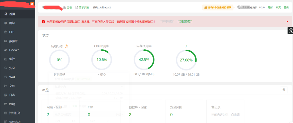 自带宝塔面板: