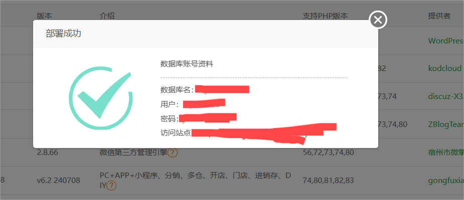 弹出站点框网站信息,不着急先叉掉,点击访问站点,跳转安装初始页面