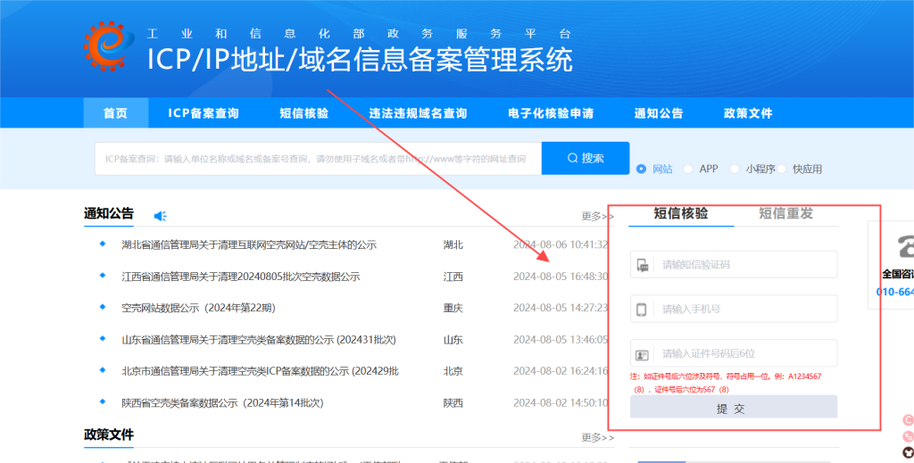 2.阿里云初审之后,工信部会让你进行短信核验: