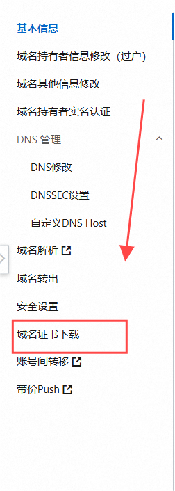 域名证书:阿里云主页面——控制台——点击域名,进入域名控制台