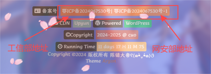 2.建议在个人网站页脚也添加一条网安部链接,如我的前者连接工信部地址,后者连接网安部地址