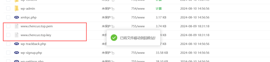 文件页面网站:解压后,删除源压缩包,可以看到此处的pem,key后缀文件
