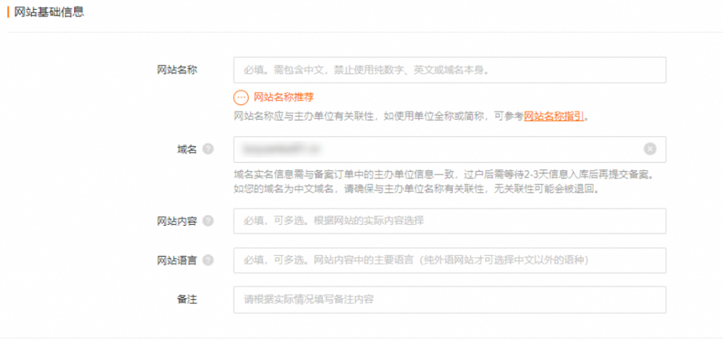 填写网站名称,参考阿里云规范: 阿里云网站信息规范
