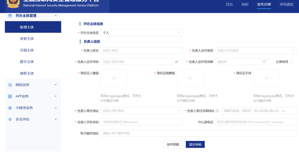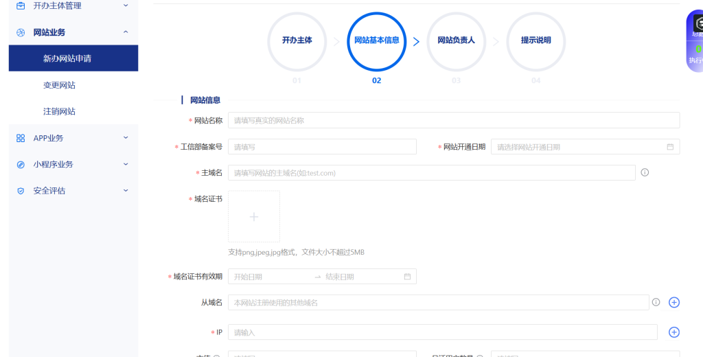 选择网站业务——新办网站申请