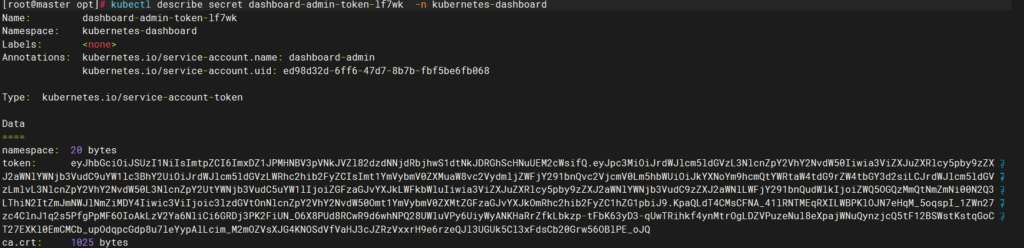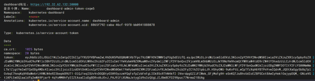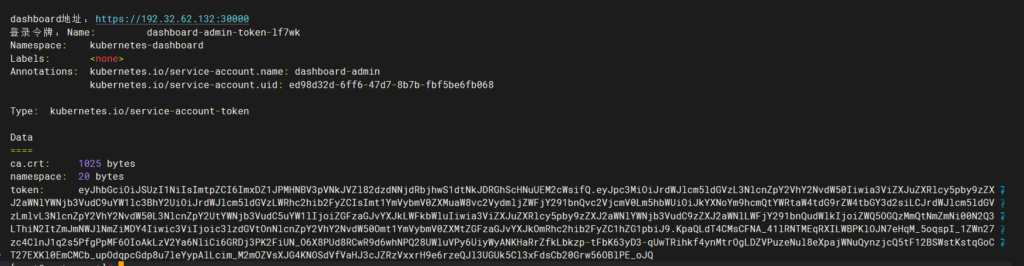 kubectl describe secret admin的密钥 -n kubernetes-dashboard