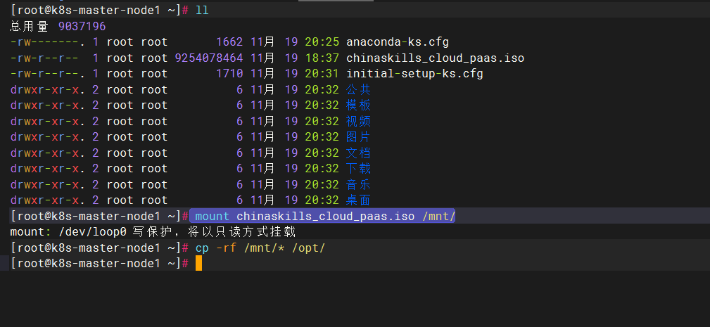 mount chinaskills_cloud_paas.iso /mnt/  ##将源挂载到mnt下面